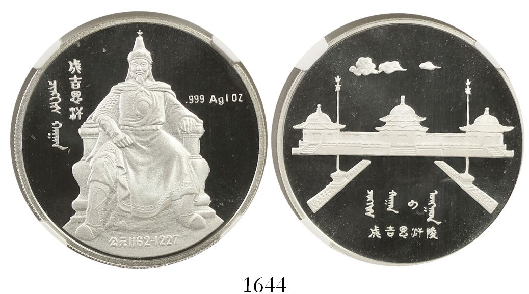 China, 1-oz silver medal, Genghis Khan, (1993), encapsulated NGC PF 69 Ultra Cameo. Blindingly bright and flawless.