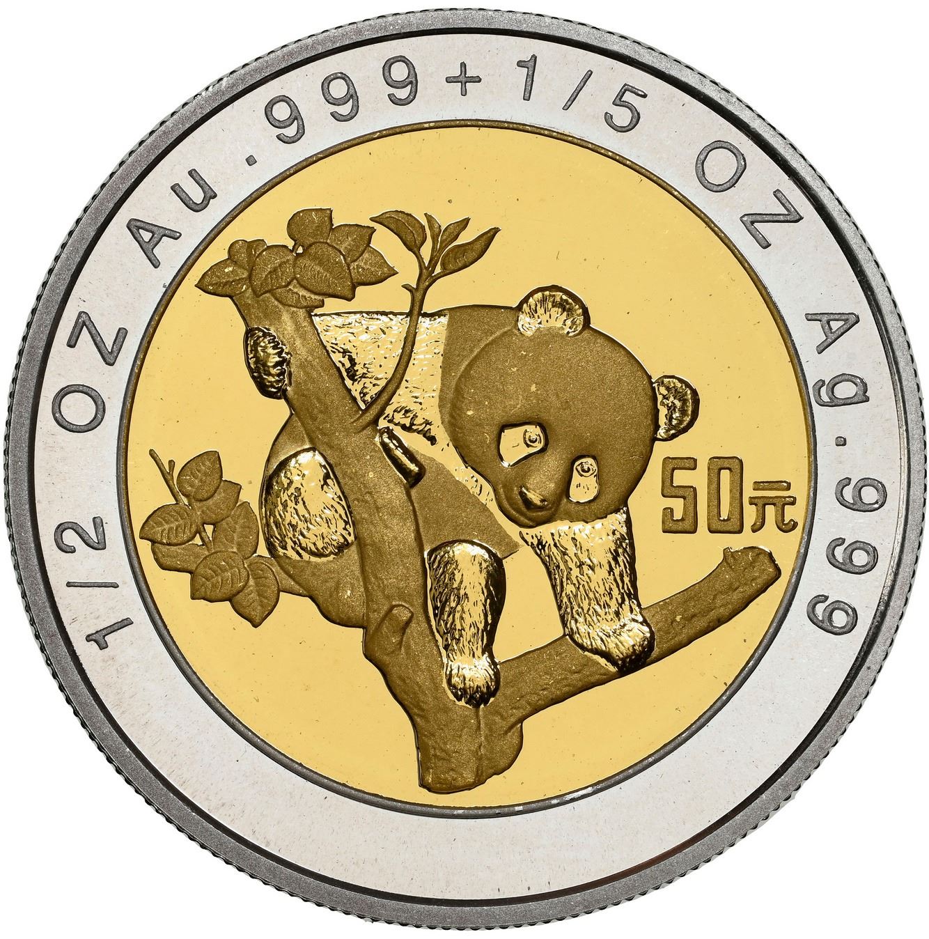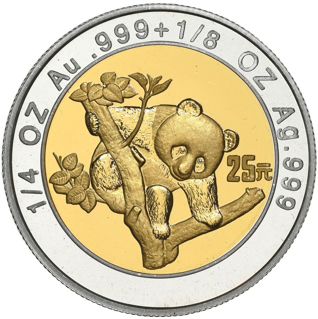 China (People's Republic), bimetallic proof three-coin Panda denomination set (10, 25, and 50 yuan),