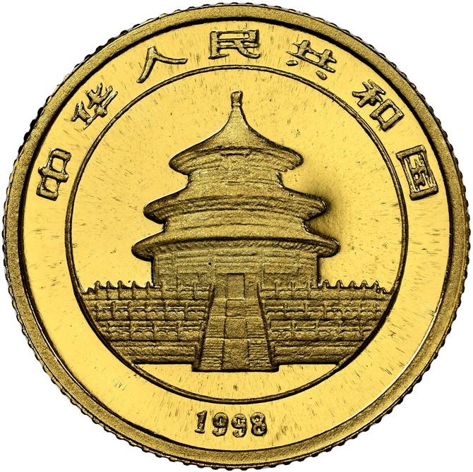 China (People's Republic), gold 10 yuan (1/10 oz) Panda, 1998, small date (Shanghai mint), NGC MS 69
