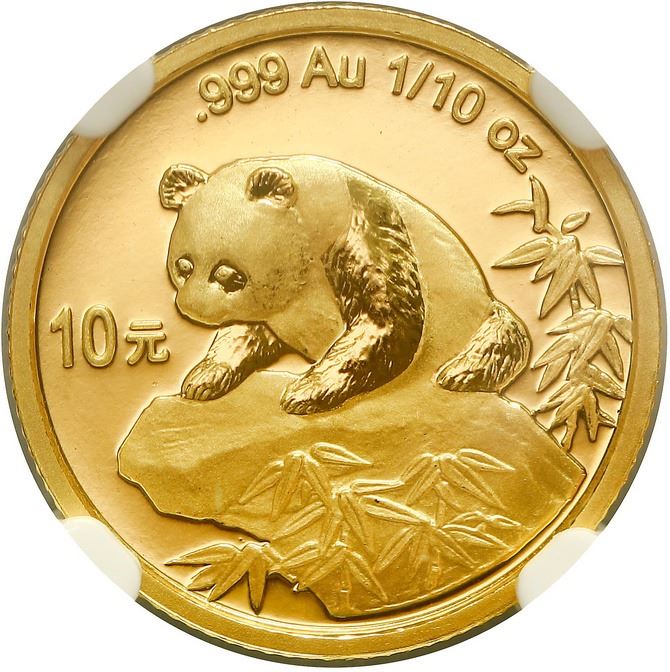 China (People's Republic), gold 10 yuan (1/10 oz) Panda, 1999, large date serif 1 (Shenzen Guobao mi
