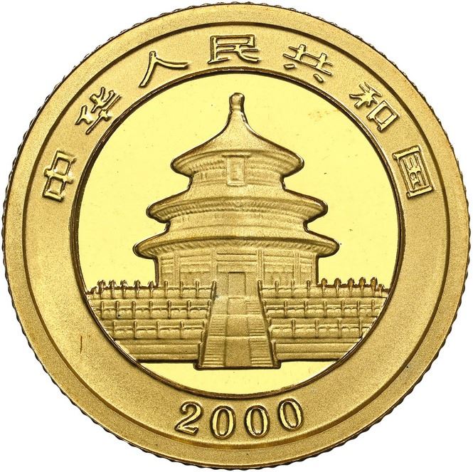 China (People's Republic), gold 10 yuan (1/10 oz) Panda, 2000, frosted ring (Shenyang mint), NGC MS