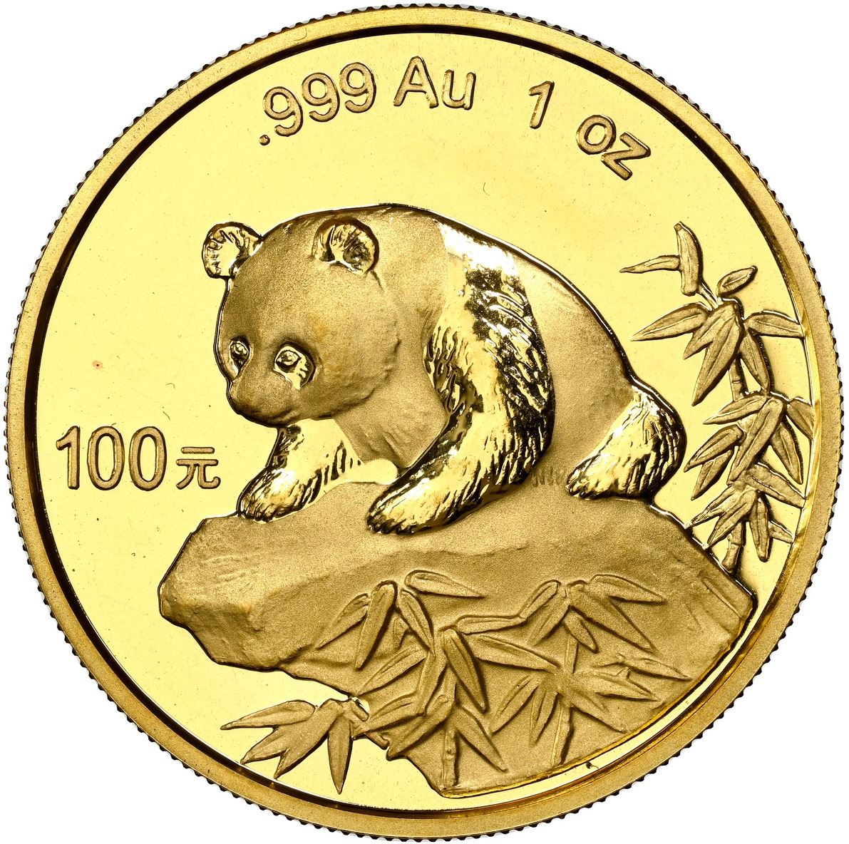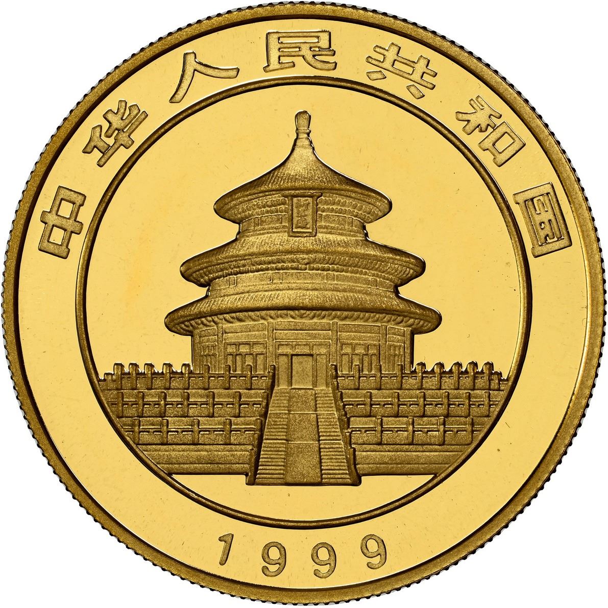 China (People's Republic), gold 100 yuan (1 oz) Panda, 1999, large date plain 1 (Shenyang mint), NGC