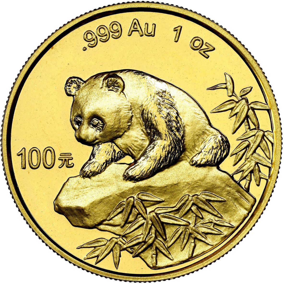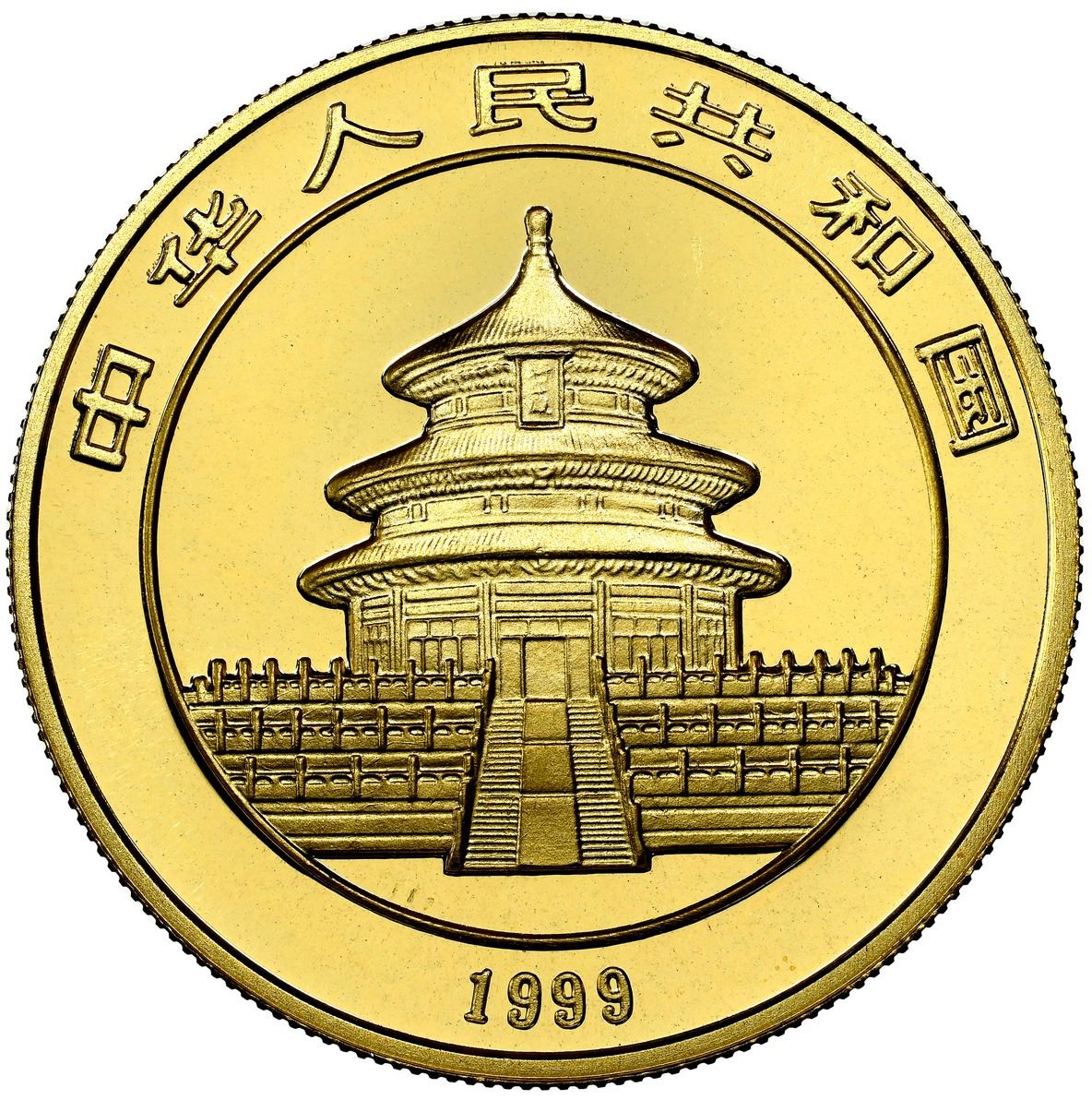 China (People's Republic), gold 100 yuan (1 oz) Panda, 1999, small date (Shanghai mint), NGC MS 69 ("top pop"). KM-1221; PAN-316A. None graded higher in the current NGC census. This year is the only one in which all Pandas were struck at three separate mints. Anthony: "The 1999 100 Yuan 1 oz. gold Small Date Panda is another key coin." Mintage for all the mints: 125,000 planned; 32,439 actual; estimated extant population for this variety <3,400. Pedigreed to the Gansu Collection of Chinese Panda Coinage.