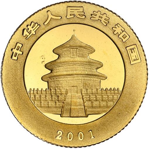 China (People's Republic), gold 20 yuan (1/20 oz) Panda, 2001 D, NGC MS 69.