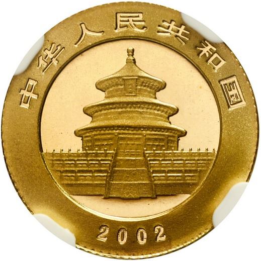 China (People's Republic), gold 20 yuan (1/20 oz) Panda, 2002, frosted bamboo (Shenzen Guobao mint),
