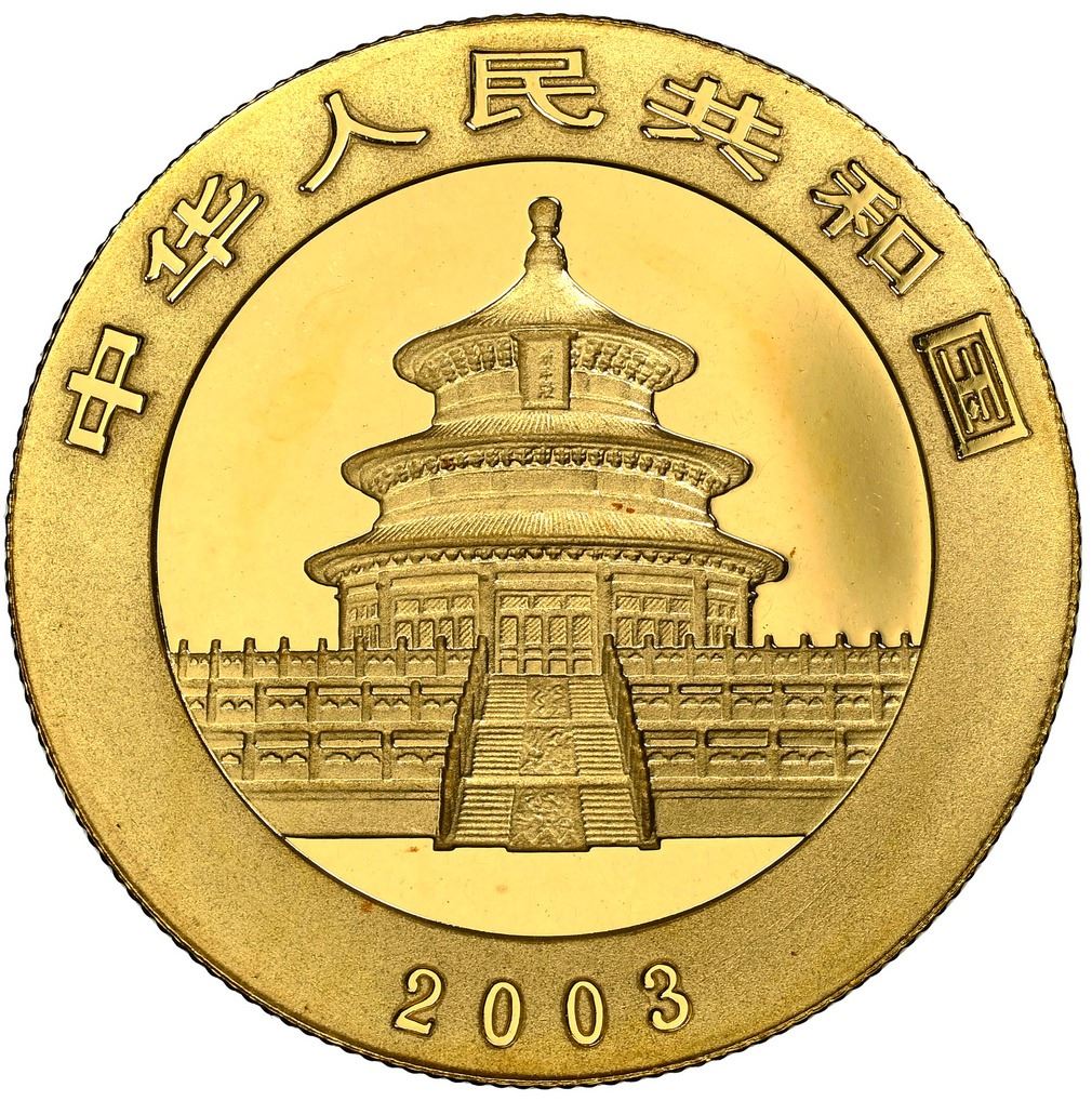China (People's Republic), gold 200 yuan (1/2 oz) Panda, 2003, frosted bamboo (Shenyang mint), NGC M