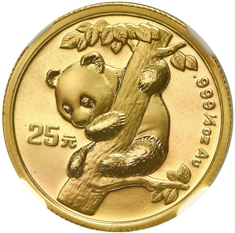 China (People's Republic), gold 25 yuan (1/4 oz) Panda, 1996, small date (Shanghai mint), NGC MS 69.