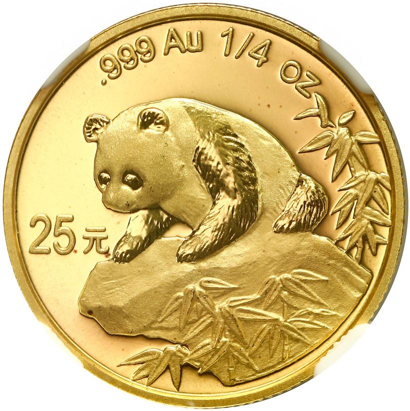 China (People's Republic), gold 25 yuan (1/4 oz) Panda, 1999, large date serif 1 (Shenzen Guobao min