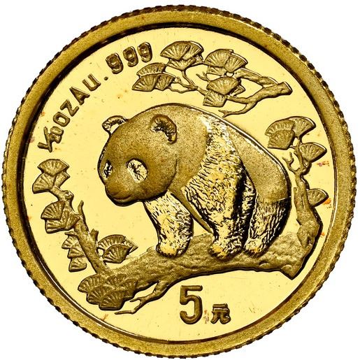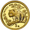 China (People's Republic), gold 5 yuan (1/20 oz) Panda, 1997, small date (Shanghai mint), NGC MS 69. KM-984; PAN-283A. Anthony: "among the scarcer dates… only a small fraction of these coins have apparently survived." Actual mintage for both mints: 54,853; estimated extant population for this variety <6,700. Pedigreed to the Gansu Collection of Chinese Panda Coinage.