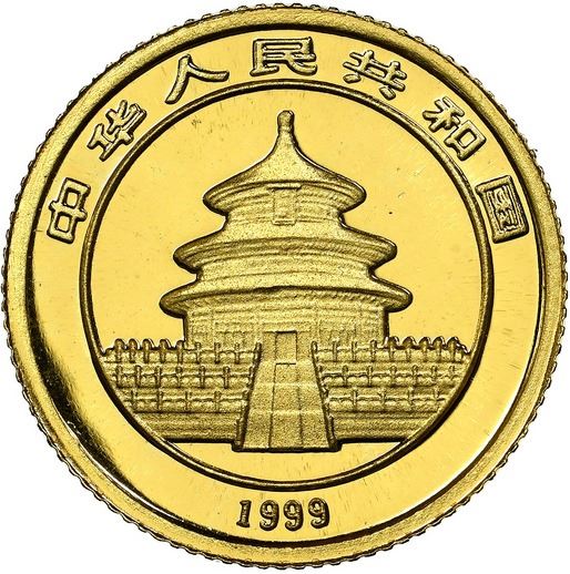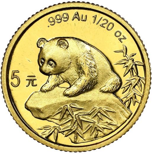 China (People's Republic), gold 5 yuan (1/20 oz) Panda, 1999, small date (Shanghai mint), NGC MS 69. KM-1215; PAN-320A. Only eighteen higher at MS 70 in the current NGC census. This year is the only one in which all Pandas were struck at three separate mints. Anthony: "The 1999 5 Yuan 1/20 oz. gold Small Date Panda is another key coin." Actual mintage for all the mints: 37,171; estimated extant population for this variety <2,500. Pedigreed to the Gansu Collection of Chinese Panda Coinage.