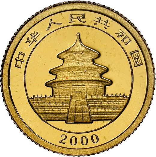 China (People's Republic), gold 5 yuan (1/20 oz) Panda, 2000, mirrored ring (Shanghai mint), NGC MS