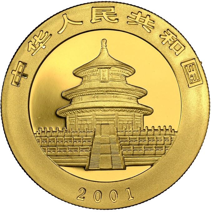 China (People's Republic), gold 50 yuan (1/10 oz) Panda, 2001 D, NGC MS 69.