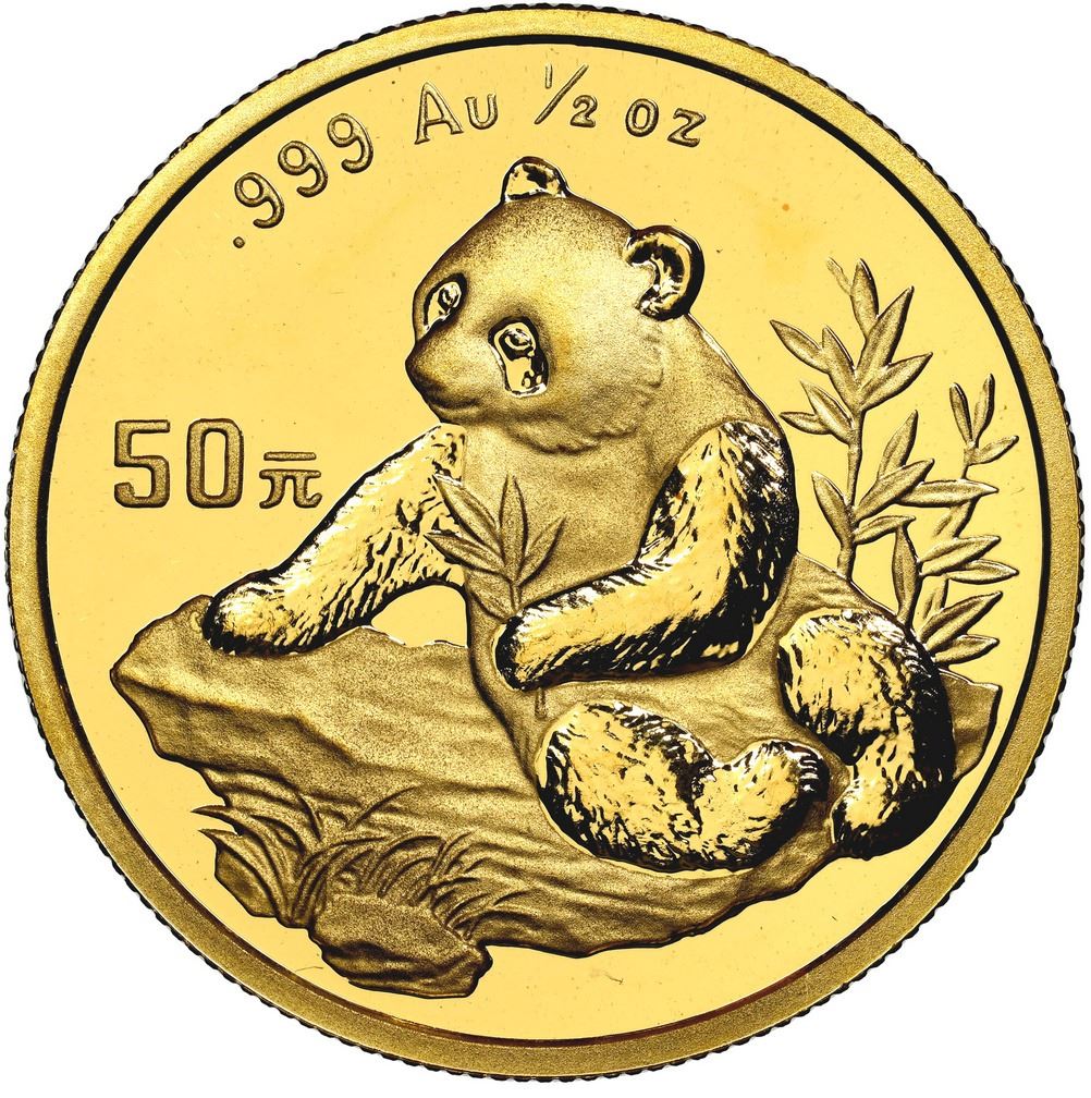 China (People's Republic), gold 50 yuan (1/2 oz) Panda, 1998, large date (Shenyang mint), NGC MS 69 ("top pop"). KM-1129; PAN-304B. Lowest reported mintage of any year of 50 yuan gold Pandas, with very low survival estimate for this variety. Anthony: "1998 has become perhaps the most sought-after year for gold Pandas. All the coins from this year are key coins and the 50 Yuan is considered the rarest of all." Actual mintage just 4,168 across both mints; estimated extant population for this variety <550. Pedigreed to the Gansu Collection of Chinese Panda Coinage.