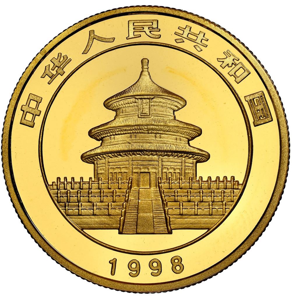 China (People's Republic), gold 50 yuan (1/2 oz) Panda, 1998, large date (Shenyang mint), NGC MS 69