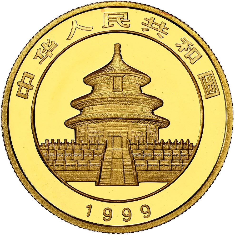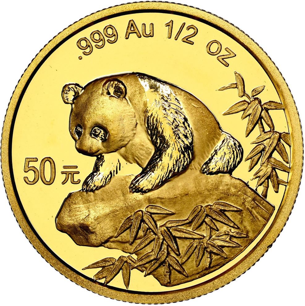 China (People's Republic), gold 50 yuan (1/2 oz) Panda, 1999, large date plain 1 (Shenyang mint), NG