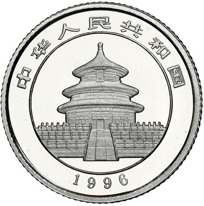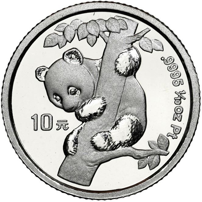 China (People's Republic), platinum proof 10 yuan (1/10 oz) Panda, 1996, NGC PF 69 Ultra Cameo. KM-890; PAN-272A. Only eight higher in PF 70 in the current NGC census. Anthony: "By 1996 China was near to ending the 10 Yuan platinum series. The mintage was reduced from 5,000 in 1995 to 2,500 in 1996. Part of this was due to the Mint being extraordinarily busy with other coin series. That is reportedly why the Perth Mint in Australia was contracted to strike the 1996 10 Yuan platinum Panda." Mintage: 2,500 (planned; actual and surviving unknown). Pedigreed to the Gansu Collection of Chinese Panda Coinage.