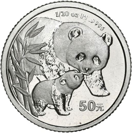 China (People's Republic), platinum proof 50 yuan (1/20 oz) Panda, 2004, NGC PF 69 Ultra Cameo. KM-1532; PAN-380A. The final date of 1/20 oz platinum Pandas (and the only platinum Panda issue for this date). Mintage: 50,000 planned (actual and surviving unknown). Pedigreed to the Gansu Collection of Chinese Panda Coinage.