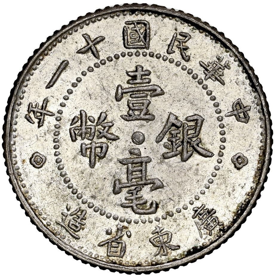China (Republic), 10 cents, year 11 (1922), Kwangtung mint, rare, NGC AU 58.