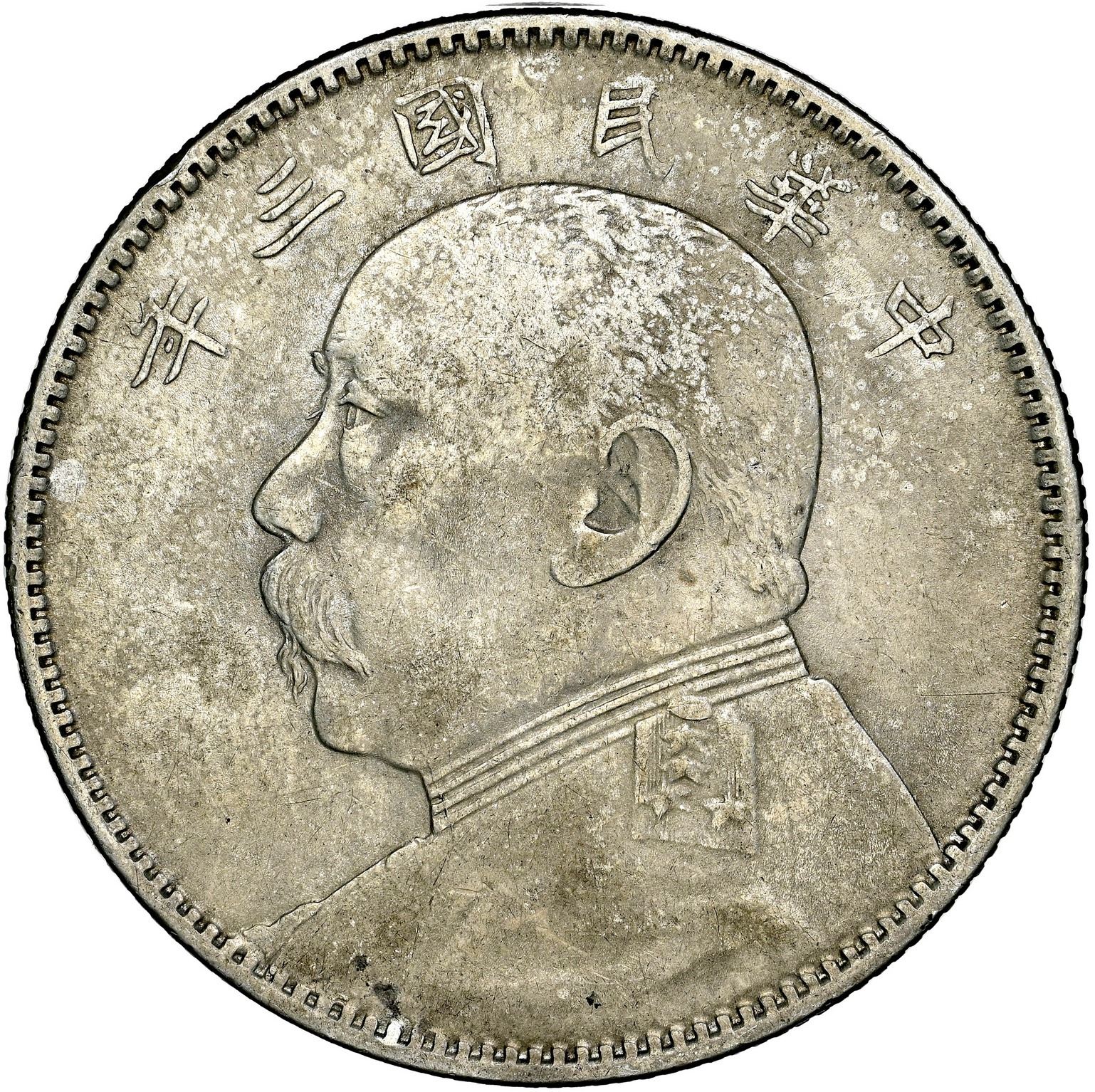 China (Republic), 50 cents, Yuan Shih-kai, year 3 (1914), Tientsin mint, NGC AU details / obv stained. L KM-Y328. Low-contrast obverse (just faintly toned, in our opinion), bold and lustrous reverse with faint light marks, popular type.