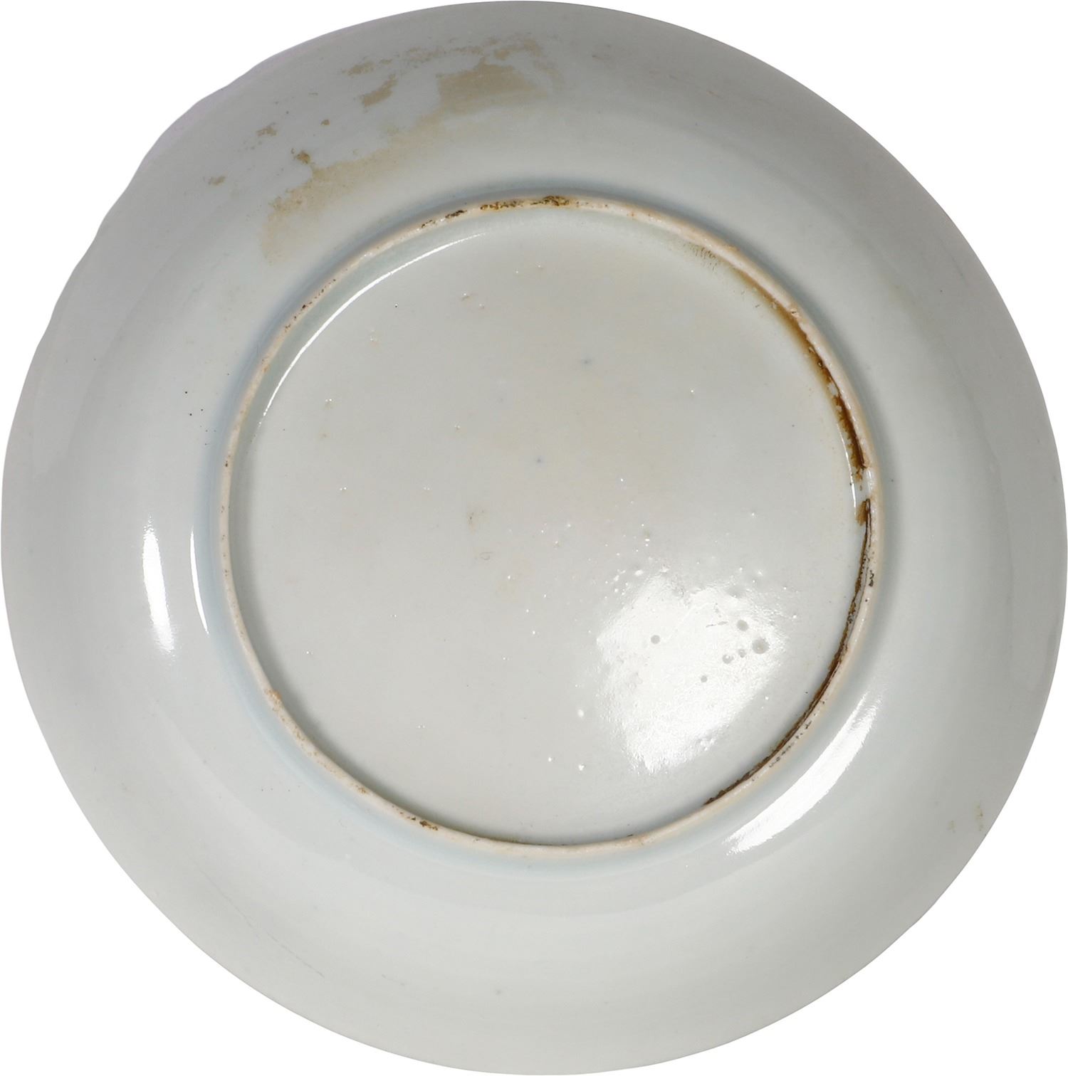 Chinese blue-on-white porcelain saucer, Imari Pavilion pattern, ex-"Nanking Cargo" (1752).