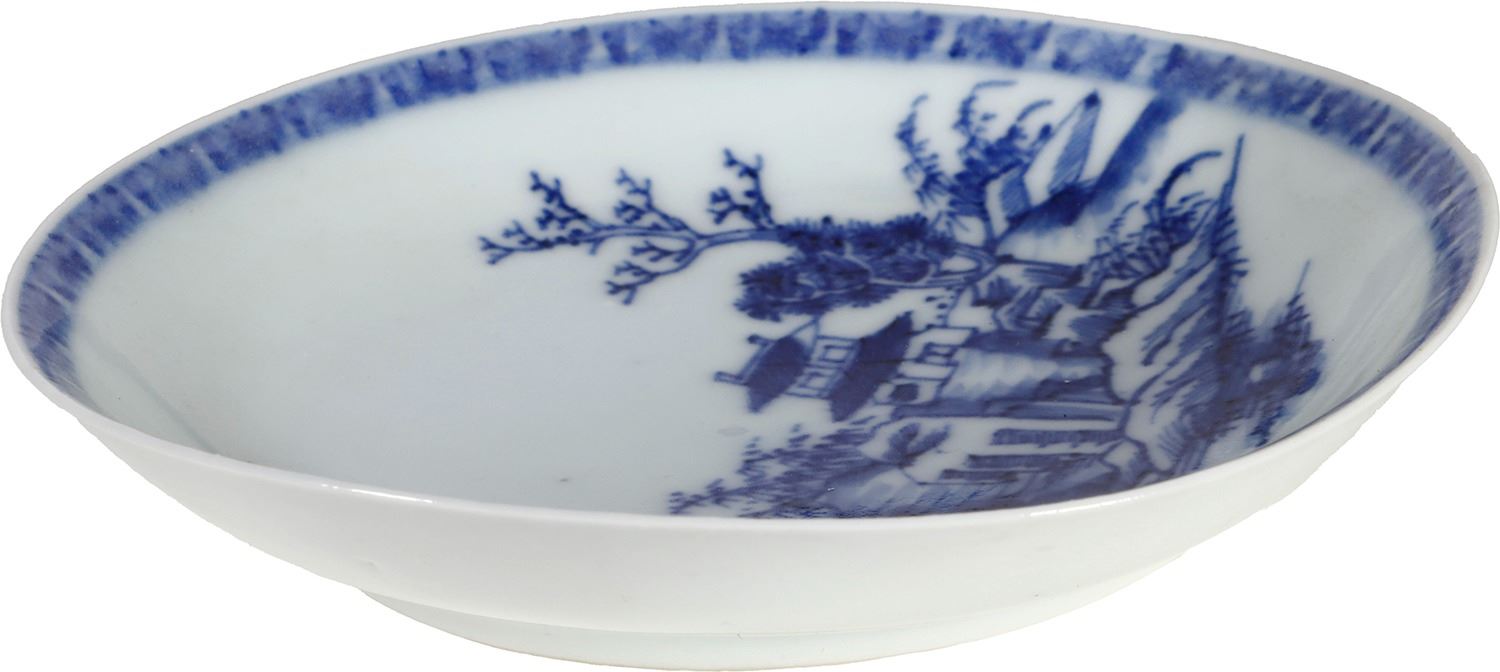 Chinese blue-on-white porcelain saucer, Pagoda Riverscape pattern, ex-"Nanking Cargo" (1752).