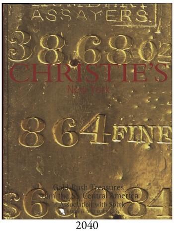 Christie's in association with Spink (New York). Gold Rush Treasures from the Central America (December 14, 2000). HB, VF. Important hardbound catalog for the second auction of gold coins and bullion from the SS Central America (1857), a fabulous wealth of gold from the sea. Pedigreed to the Tom Sebring Treasure Library.