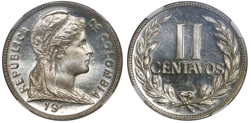 Colombia, nickel-clad steel pattern 2 centavos, (1941), NGC MS 65, finest and only specimen in NGC c