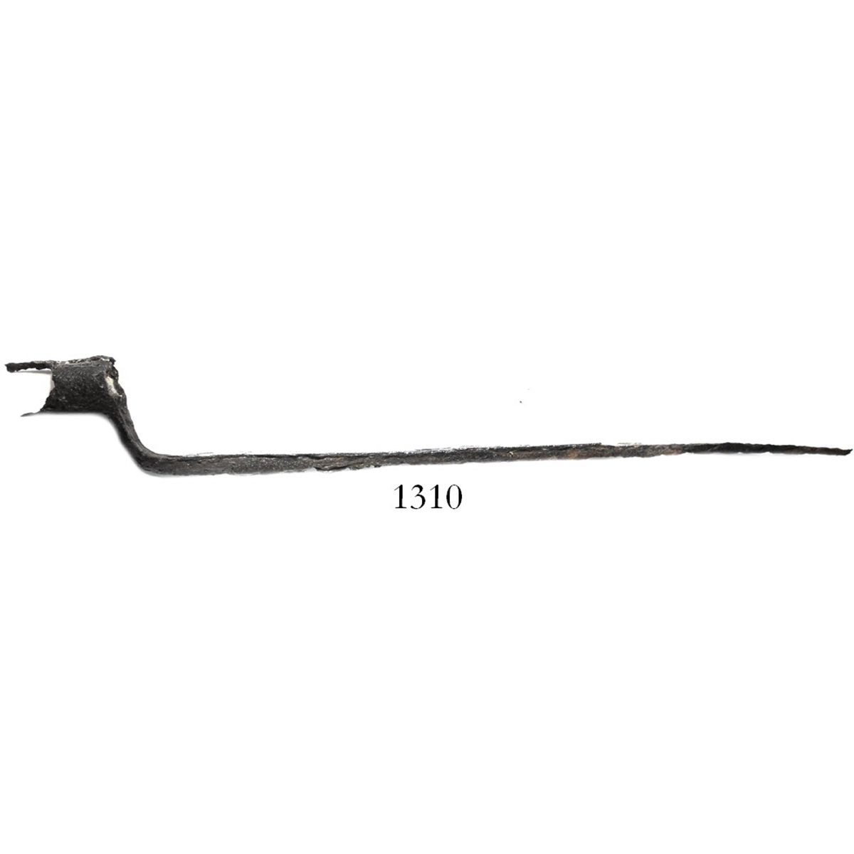 Complete iron bayonet. 220 grams; 18" long, 1" widest diameter. A typical socket bayonet with blade of triangular cross-section, rusty and missing some small pieces (especially the socket) but fully stabilized since its recovery in 1968. Pedigreed to the Marty Meylach collection. Recovered from:Spanish 1733 Fleet, Florida Keys