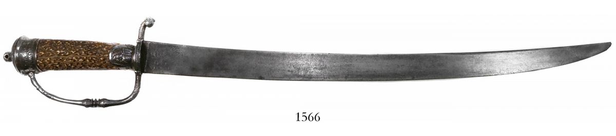 Continental hunting sword, late 1600s-early 1700s. 643 grams, 26" long. Sharp, single-edge blade with light engraving at ricasso (also a small morningstar stamp), with silver guard and antler grip, nice condition overall.