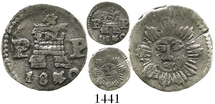 Cordoba, Argentina, 1/4 real, 1840P-P. Janson-18.1.; KM-2.2. 0.7 gram. AXF with hairline edge-split, slightly off-center castle side, lightly toned, high KM value.