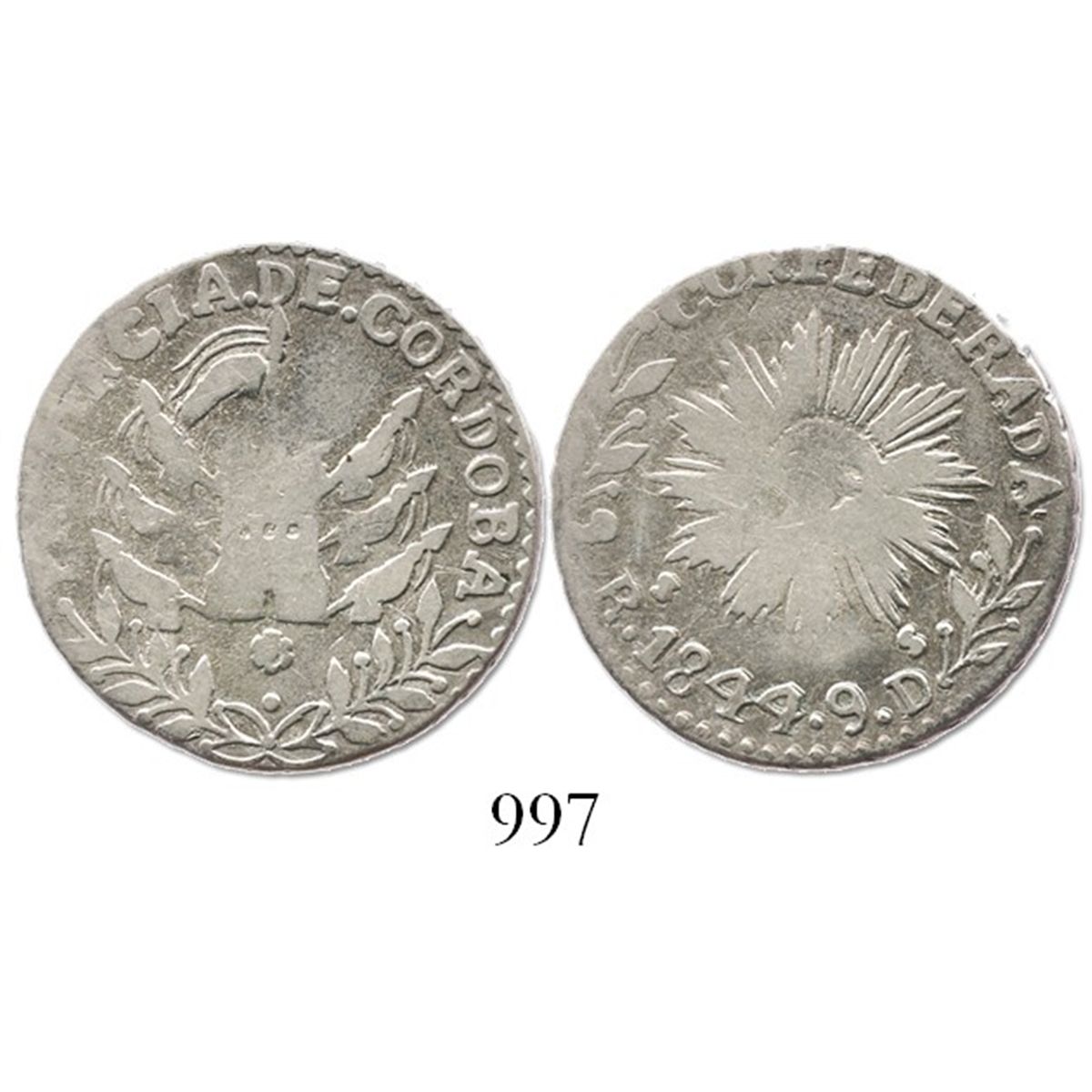 Cordoba, Argentina, 2 reales, 1844. KM-23. 6.3 grams. Silvery Fine with slightly weak centers.