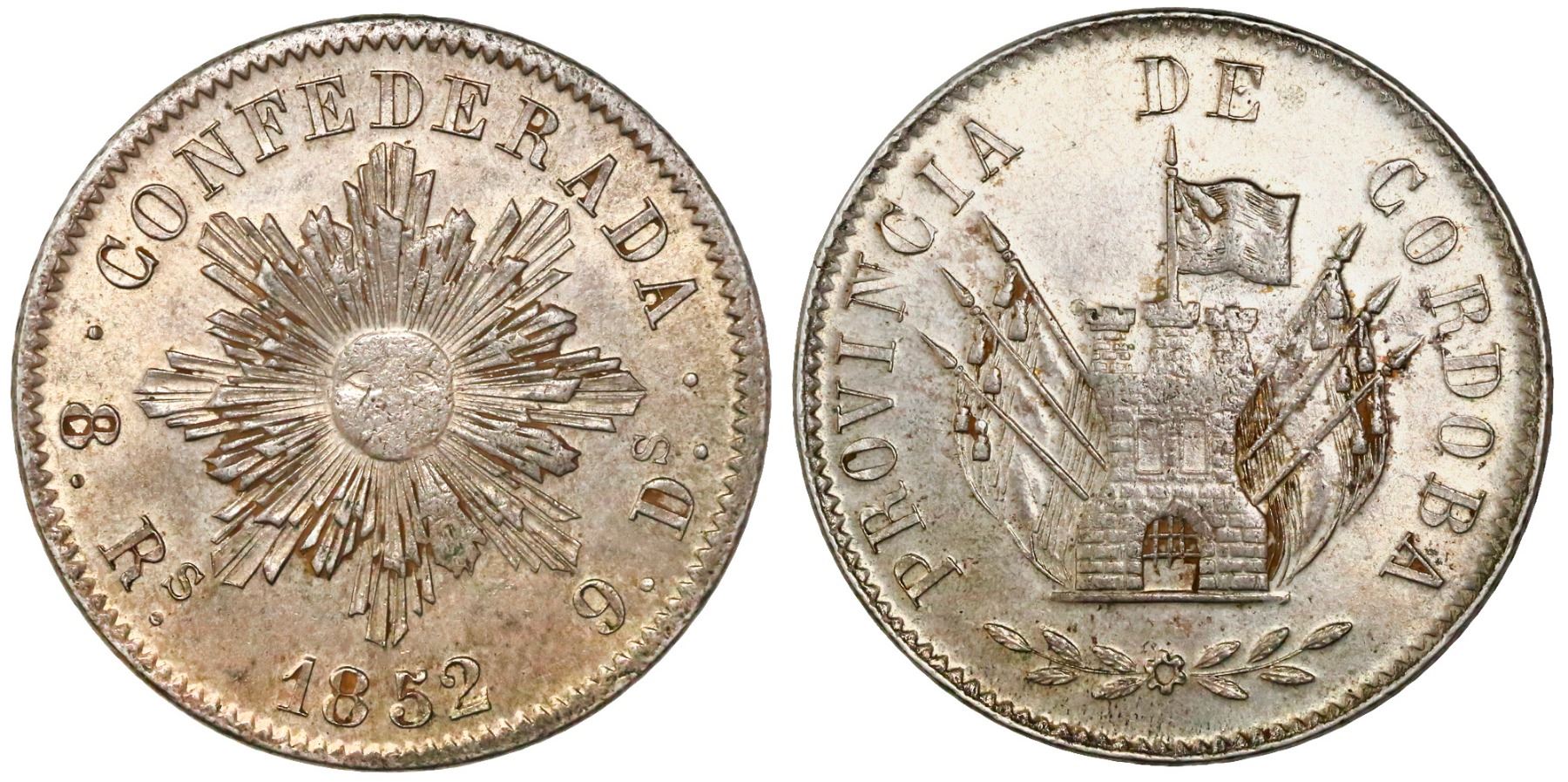 Cordoba, Argentina, 8 reales, 1852, NGC MS 62.