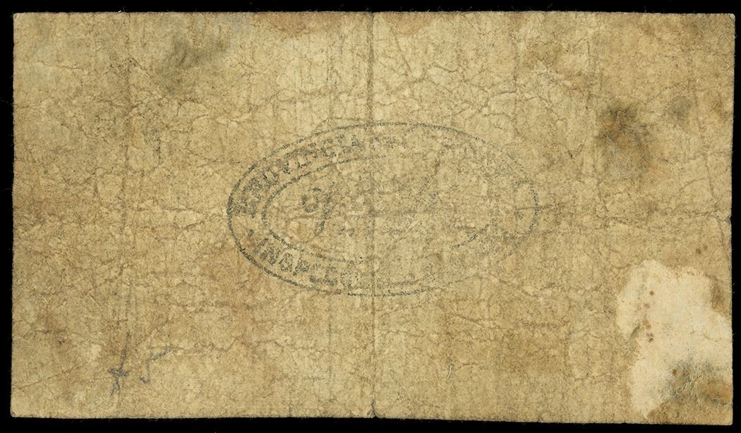 Cordoba, Argentina, Otero y Ca., 1 real plata boliviana, 1-4-1869, serial 0246. SCWPM-S1997. Very scarce note from this private issuer; a few 2 reales and 1/2 real appeared on the market three years ago but the 1 real remains elusive. VG, paper pull, residue, and contemporary pencil annotation on reverse, some rust spots on obverse, good obverse ink color, nice sequential serial number.