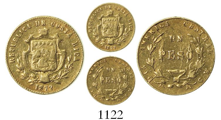 Costa Rica, 1 peso, 1872GW. KM-116 1.44 grams. XF with hint of luster, traces of die-clashing on reverse.