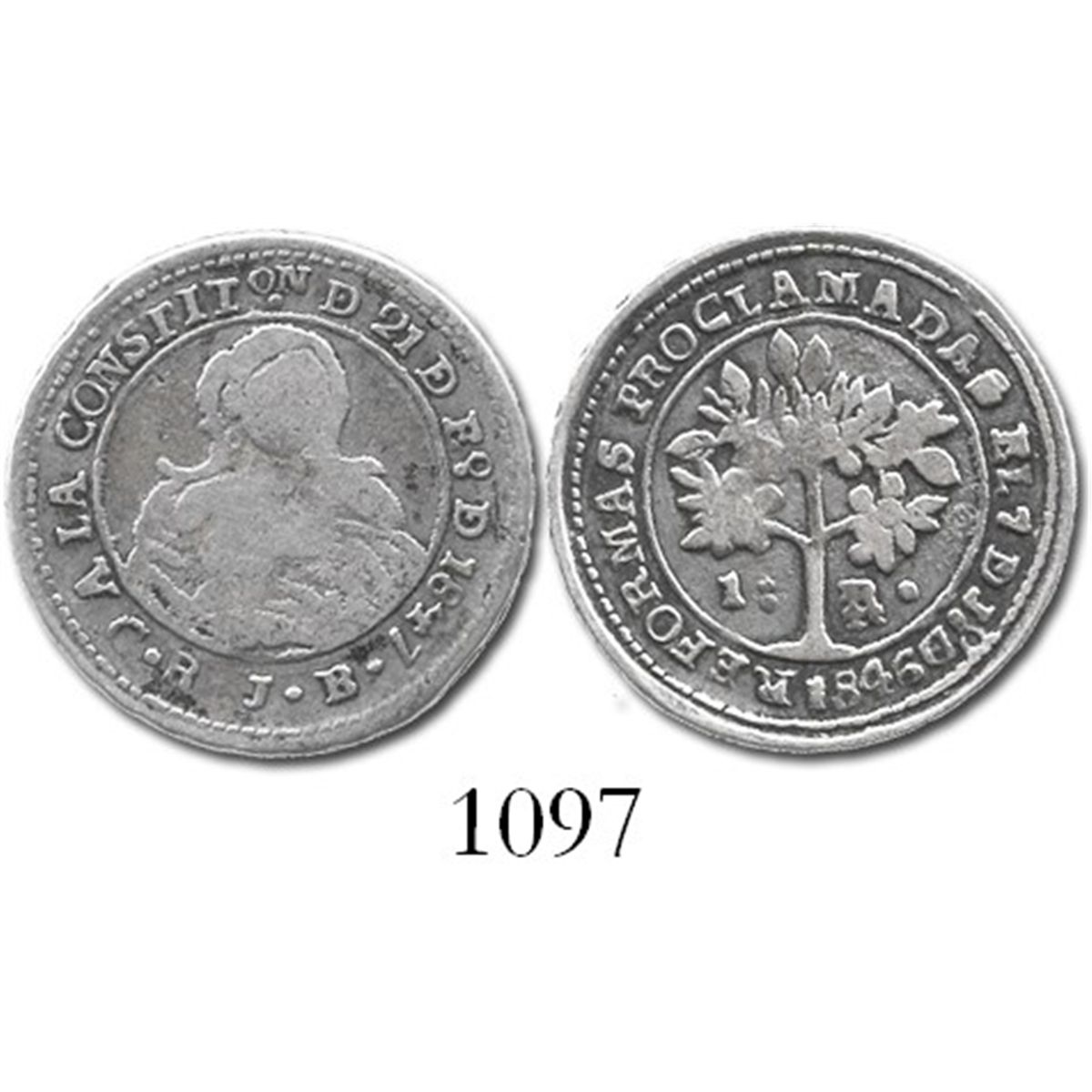 Costa Rica, 1 real, 1847JB, commemorative of 1846 Constitution, colonial edge, assayer B not in retr