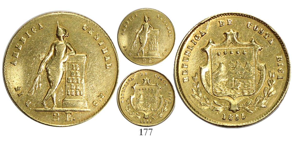 Costa Rica, 2 escudos, 1855GW. KM-99 6.26 grams. XF with better arms than usual (the standing woman still very weak), lightly polished but starting to re-tone.