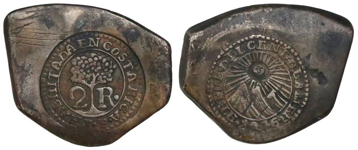 Costa Rica, 2 reales, 1846JB counterstamp (Type V) on a cob 2 reales of the mid-1700s.