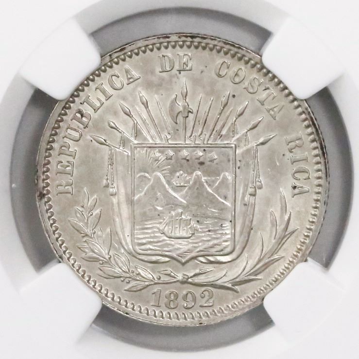 Costa Rica, 25 centavos, 1892, HEATON-BIRMm, encapsulated NGC MS 63, ex-Richard Stuart (designated o