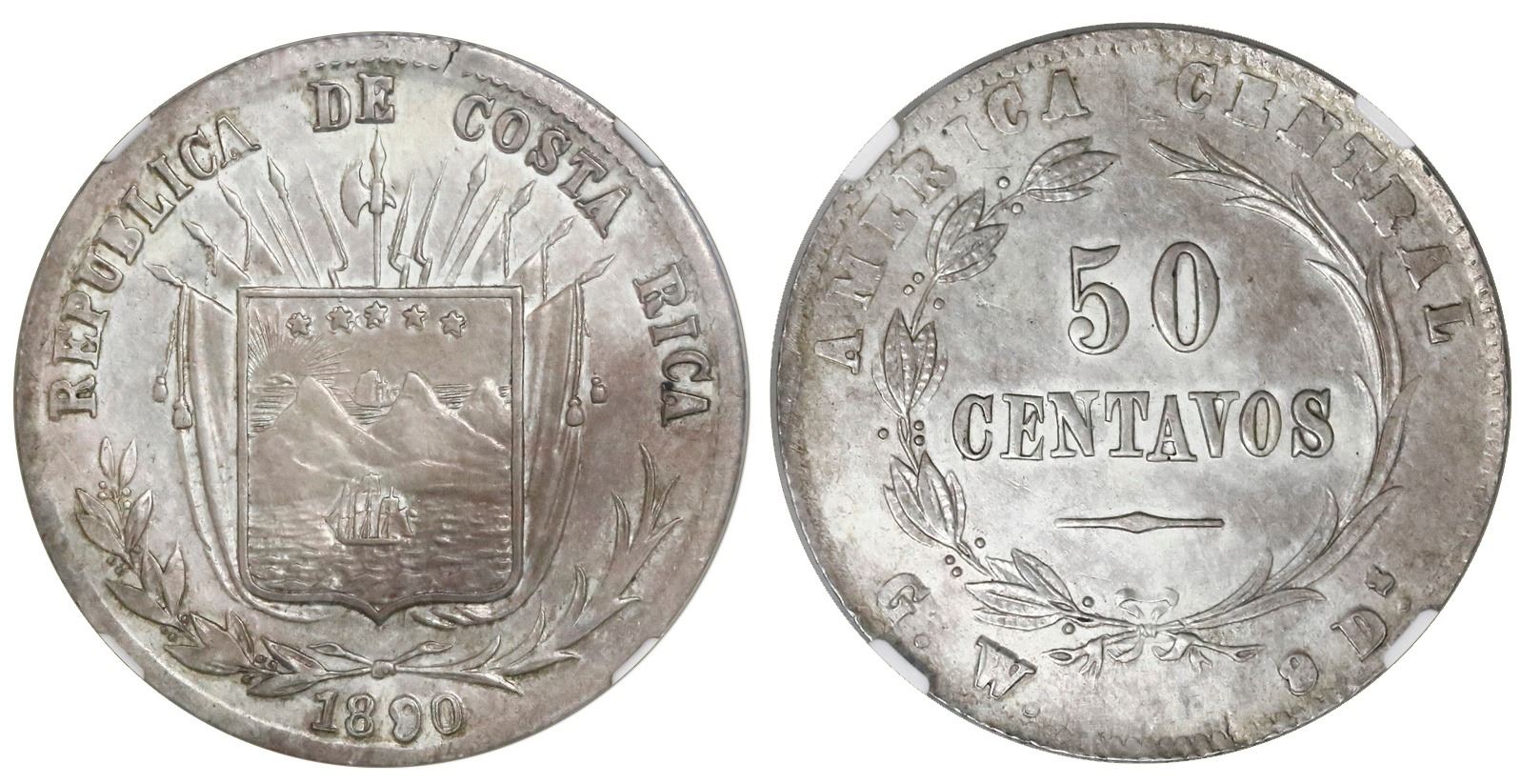 Costa Rica, 50 centavos, 1890/80GW, NGC XF 45, ex-Richard Stuart (stated on label).