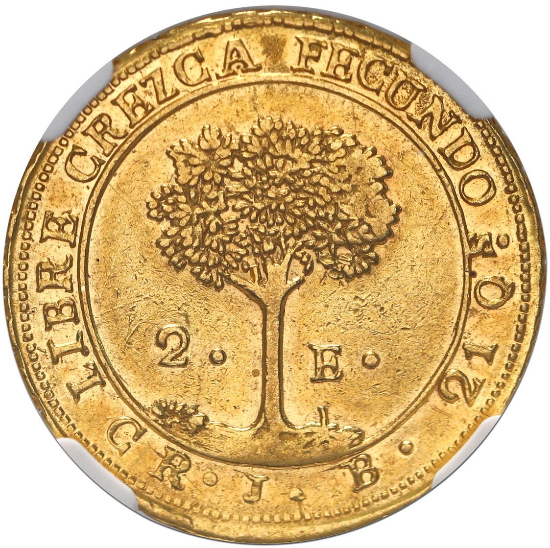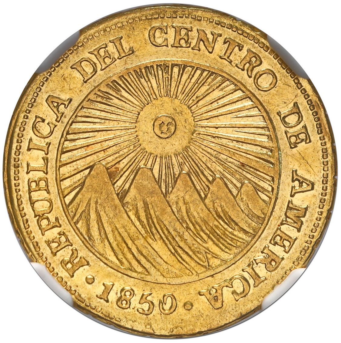 Costa Rica (Central American Republic), gold 2 escudos, 1850 JB, NGC AU details / cleaned. KM-15. Brightly lustrous and sharply struck, popular type.