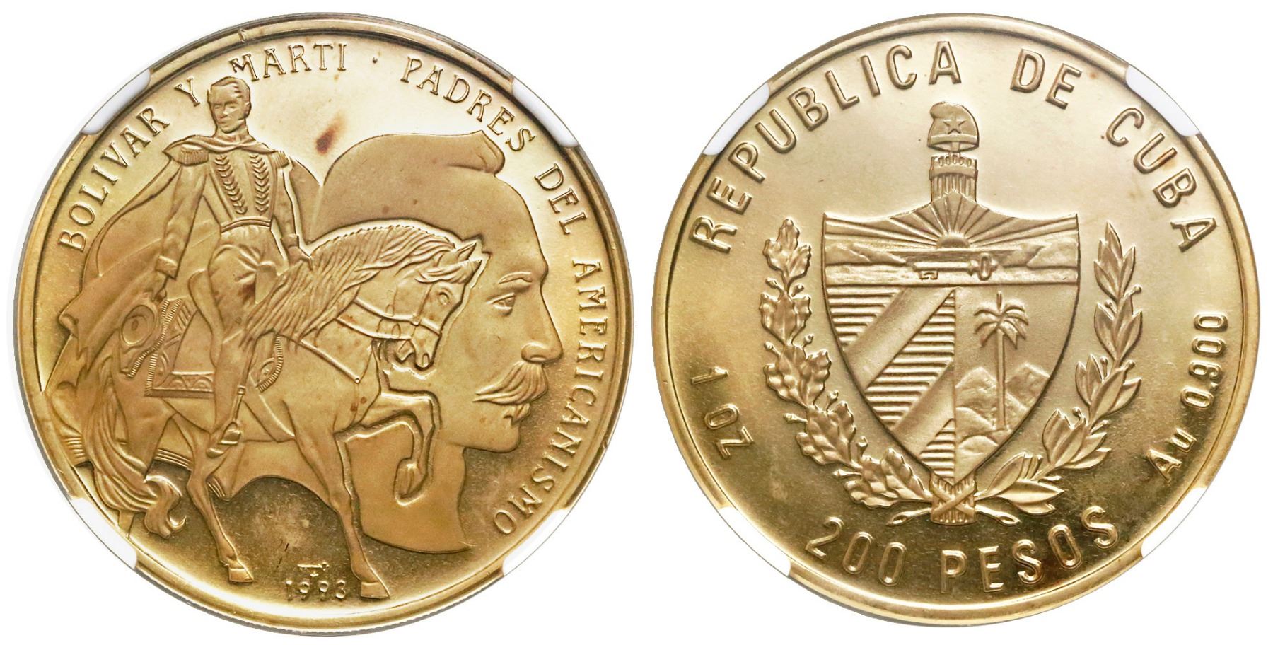 Cuba, 200 pesos, 1993, Bolivar and Marti, NGC PF 65 Ultra Cameo.