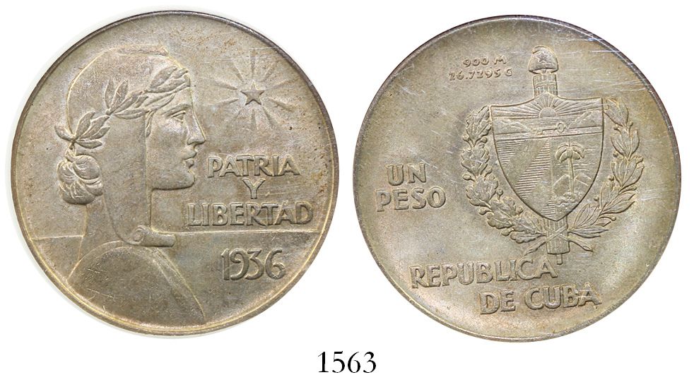 Cuba,  ABC  peso, 1936, encapsulated NGC MS 63.