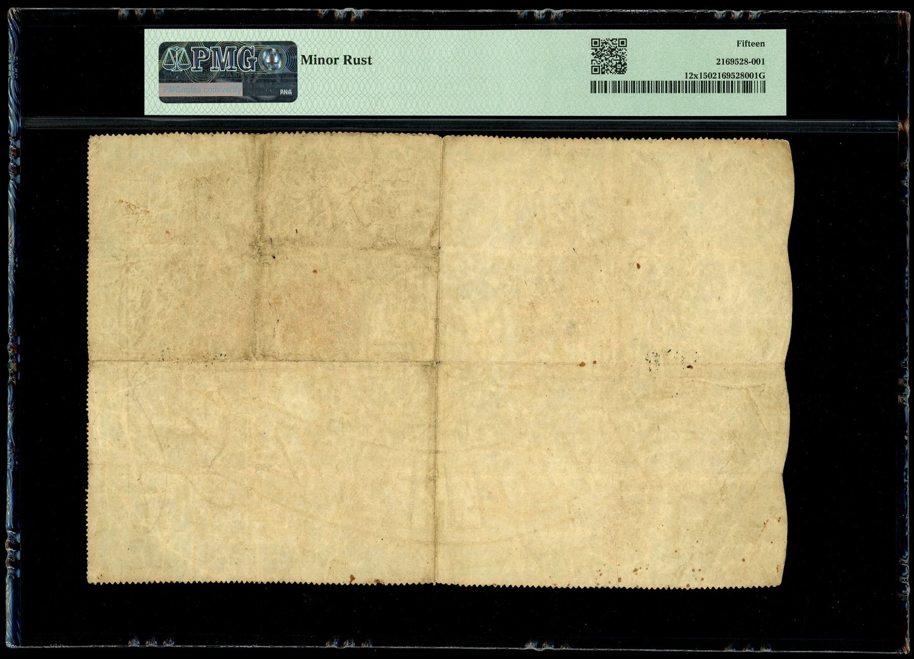 Cuba, Banco Espanol de la Habana, 10 pesos contemporary counterfeit, 7-2-1877, serial 335721, PMG Choice Fine 15. Pick-12x. There appear to be two significant periods of counterfeits from this Havana-based bank: those made in the 1870s and those made in 1898 by the American government using the original printing plates during the Spanish-American War. The lack of finer details and inconsistent ink coloration leads us to believe this is the earlier type. And yet, despite the crudity of the lithograph printing, this note apparently saw significant circulation. A few small pinholes are noted along with a few rust spots but otherwise a presentable and interesting piece of Cuban history. We could only find one other example in lower quality to hit the market in the past ten years. Please use this link to verify the certification number