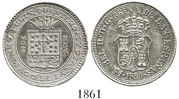 Cuba, small silver proclamation medal, Isabel II, 1834, Santiago de las Vegas.
