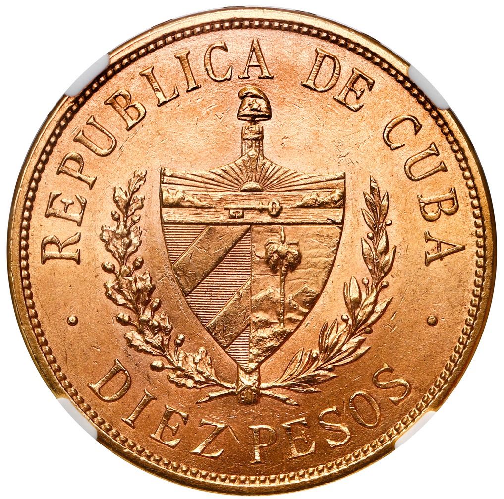 Cuba (struck at the Philadelphia Mint), gold 10 pesos, 1916, Jose Marti, NGC MS 61.