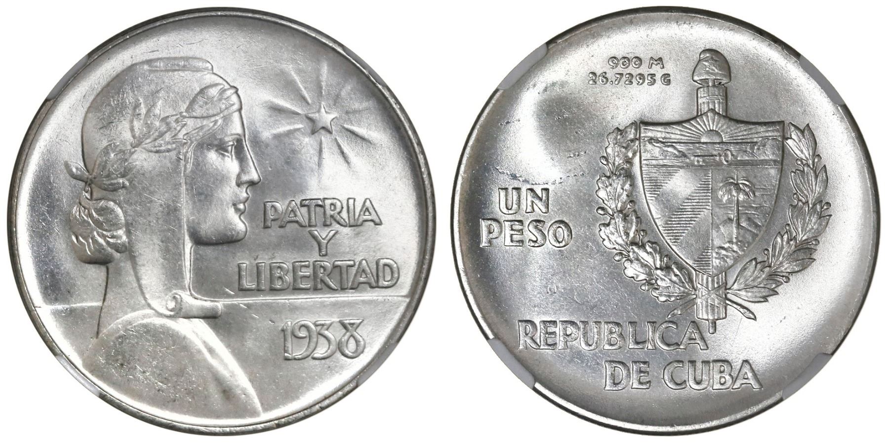 Cuba (struck at the Philadelphia mint),  ABC  peso, type 1, 1938, NGC MS 64, ex-EMO Collection (stat