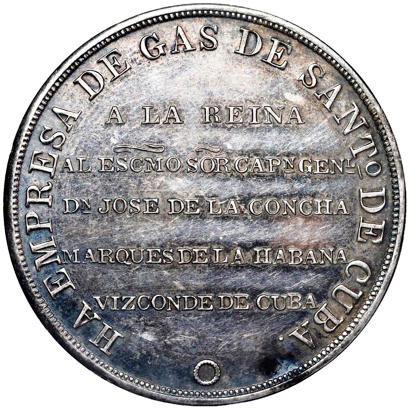 Cuba (under Spain), silver medal, Isabel II, 1857, inauguration of the gas plant in Santiago de Cuba