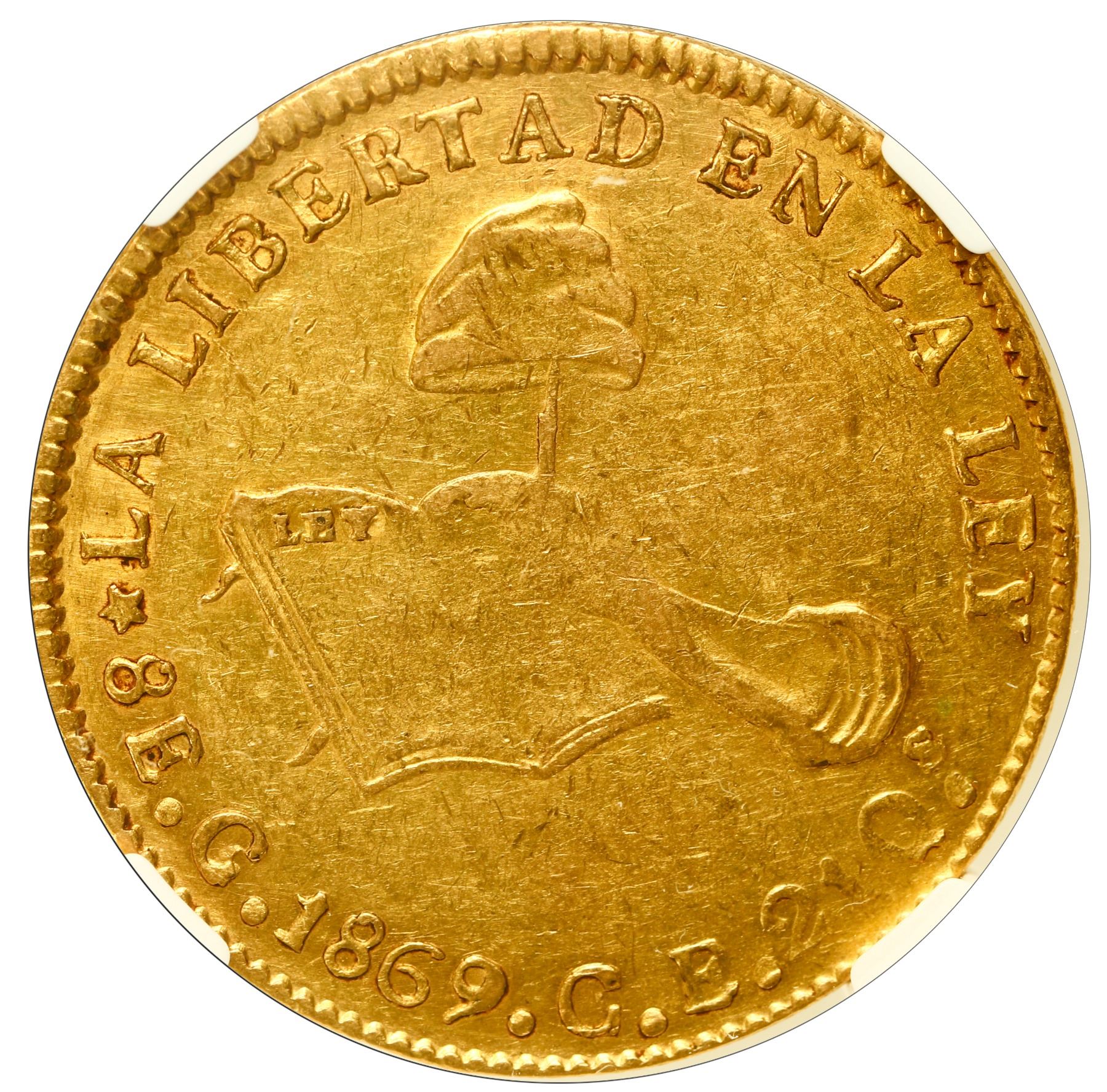 Culiacan, Mexico, gold 8 escudos, 1869 CE, NGC XF 45.