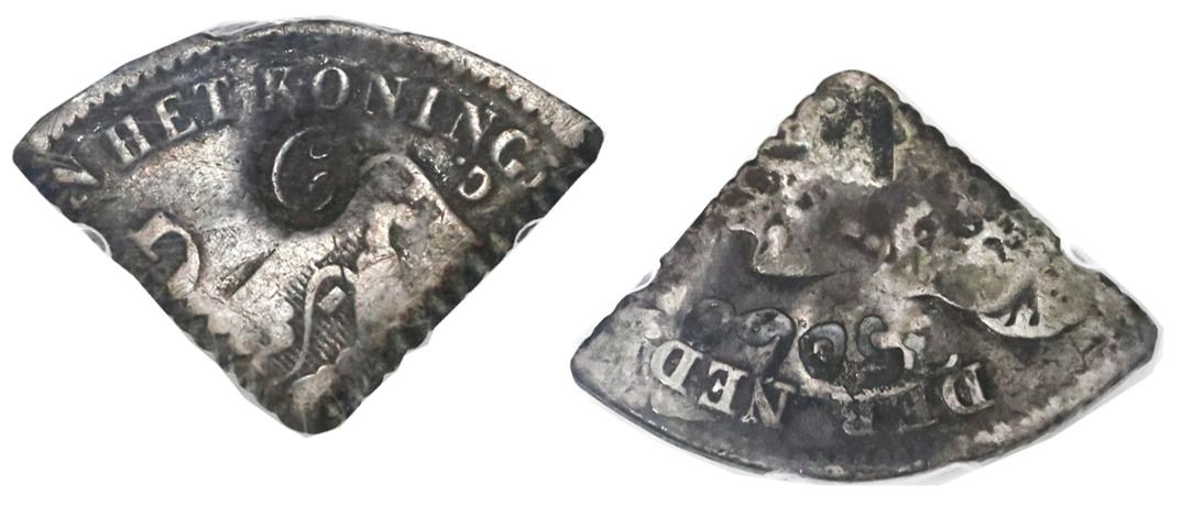 Curacao (Dutch administration), 1/4 gulden, script-C countermark (1838) on a 1/4 cut (toothed edges)