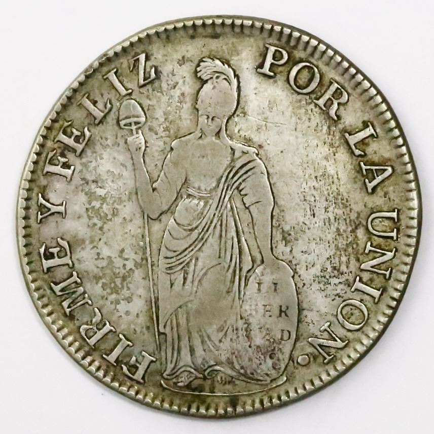 Cuzco, Peru, 4 reales, 1836B, ex-Almanzar. KM-151.1. 13.67 grams. XF with traces of luster, slightly weak centers as usual, toning around letters. Accompanied by an original Almanzar's tag (ca. 1980).